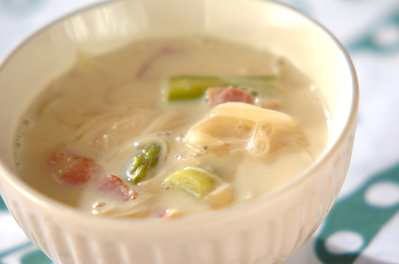豚肉とレンコンの豆乳みそスープ